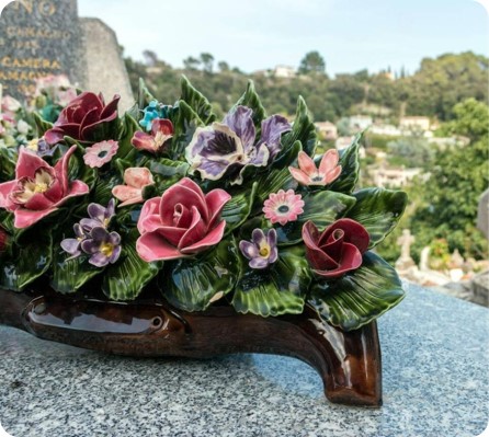 Vous souhaitez orner un monument funéraire avec des fleurs artificielles ou des fleurs en céramique élégantes et durables ?